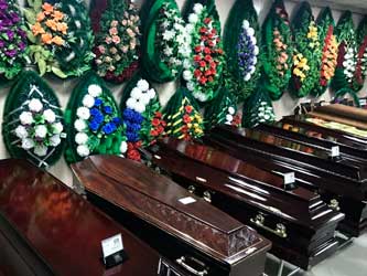 В оформлении ритуального зала, наша похоронная компания использует множество элементов это цветы, траурные ленты, венки и многое другое.
